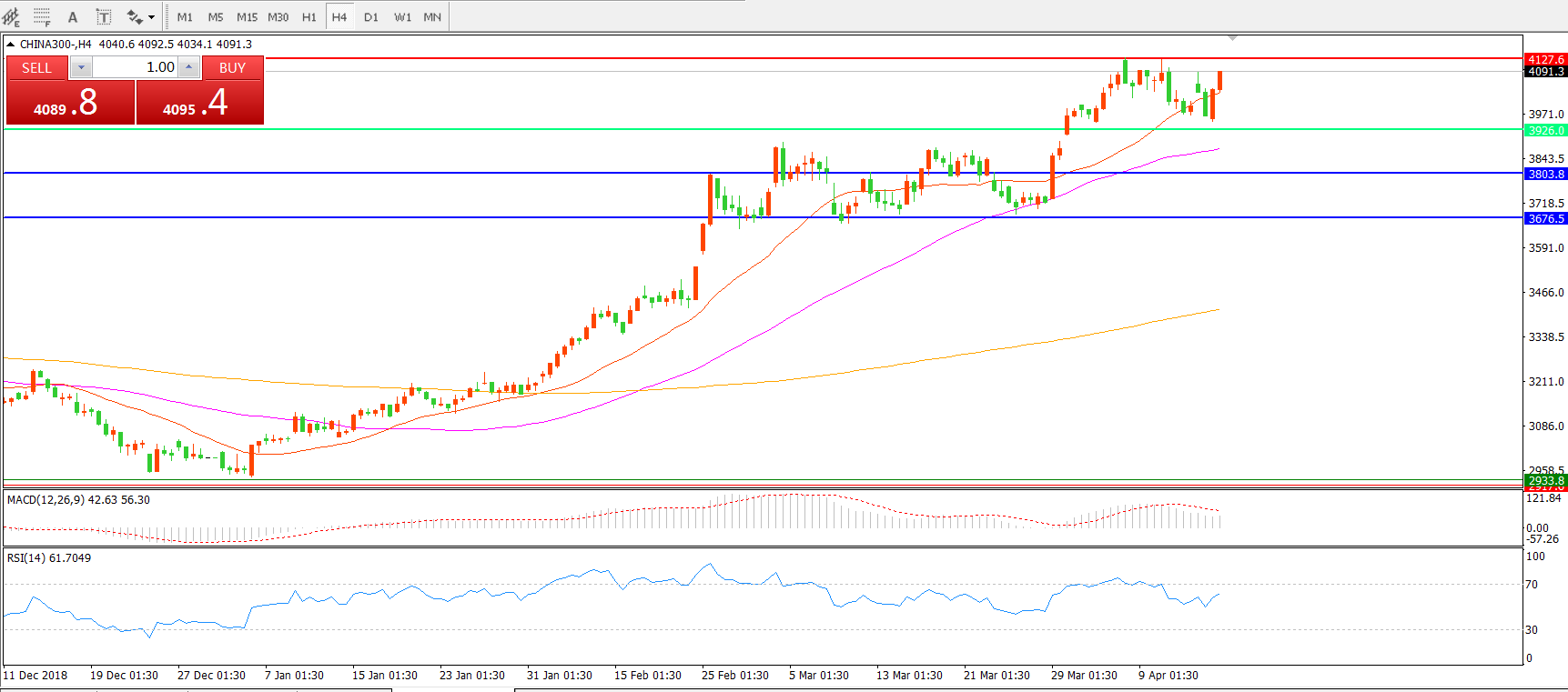 中华指数CHINA300 4小时图