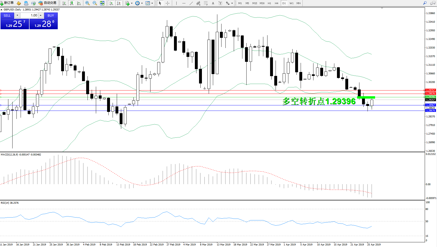 交易策略:1.29396下方看跌,目标1.28967、1.28676