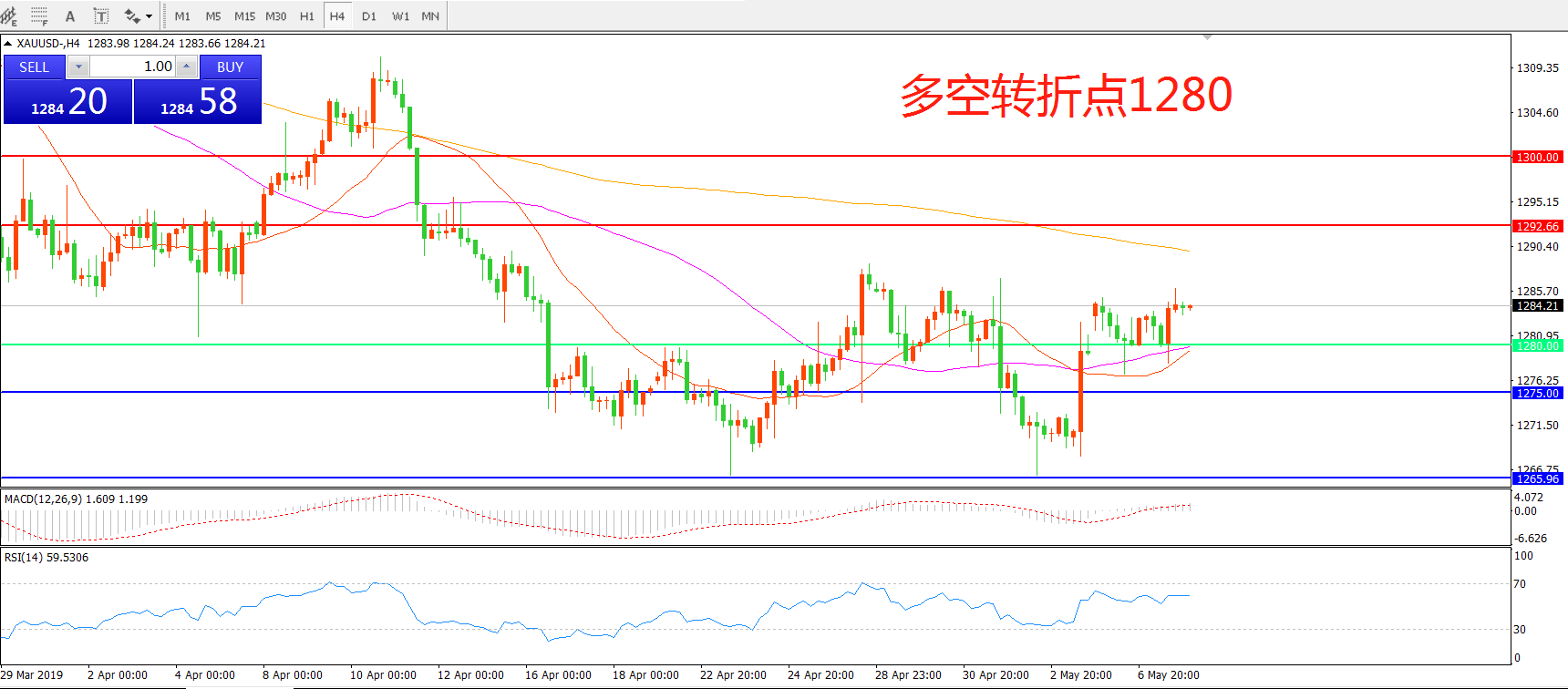 多空转折点:1280.00