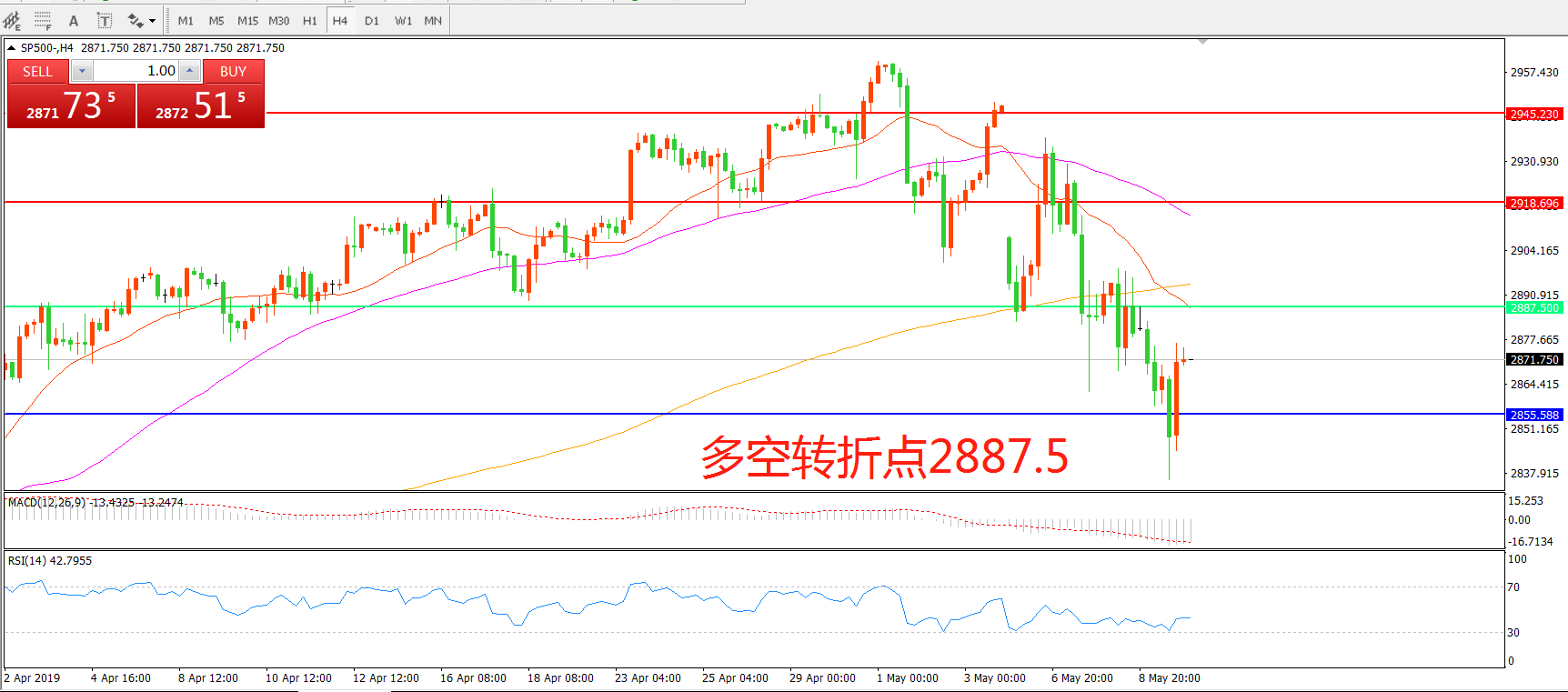 交易策略:在2887.5.之下看跌,目标2855.50     2817.50