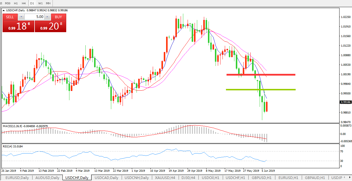 交易策略:0.9960下方看跌,目标0.9890、0.9850