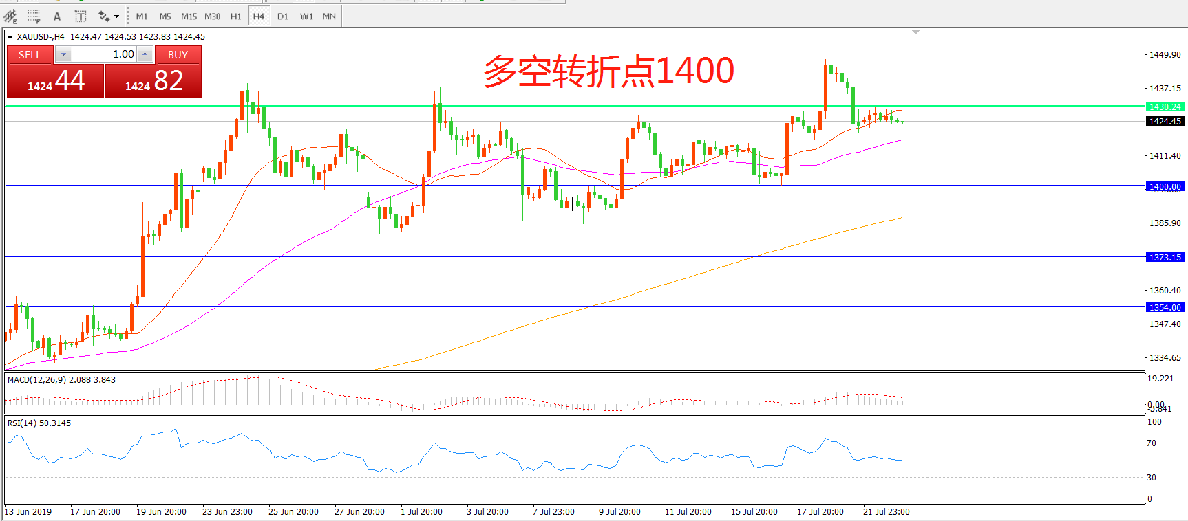 而在周一(7月22日)的行情走势中,金价维持在窄幅区间震荡,波动幅度非常有限,最终收报1424.23美元/盎司。自上周以来美联储大幅度降息的预期有所降温,这在周五也导致了金价跳水,而伊朗危机的微妙形势依然给金价带来温和的支撑,市场在等待更多催化剂的推动。