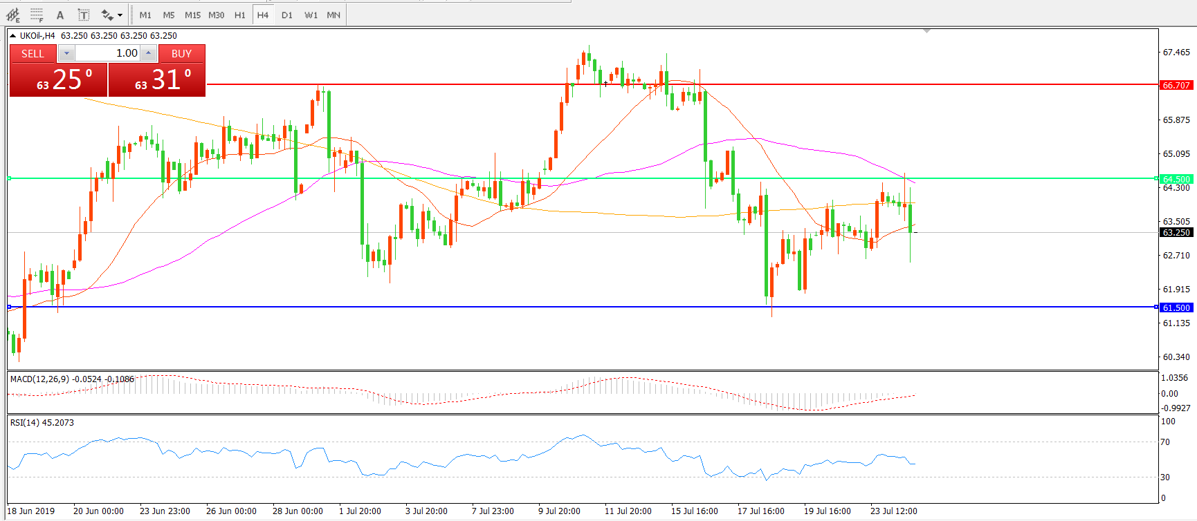 交易策略:在64.50之下看跌,目标61.50   57.50