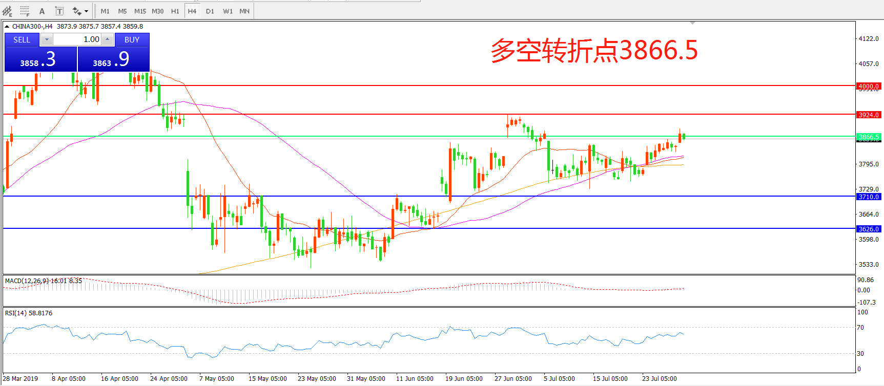 多空转折点:3866.50