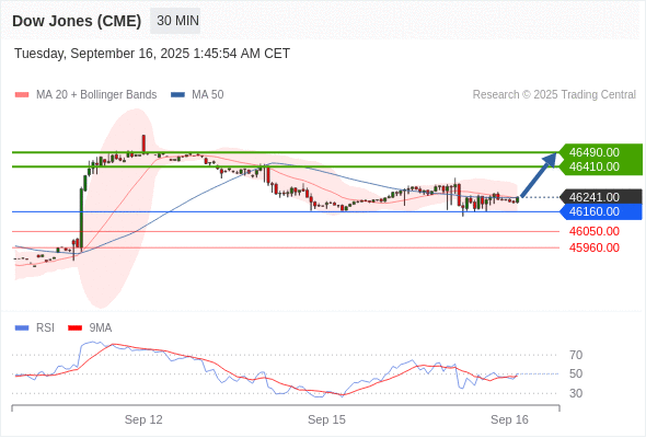 在 46160.00 之上,看涨,目标价位为 46410.00 ,然后为 46490.00 。