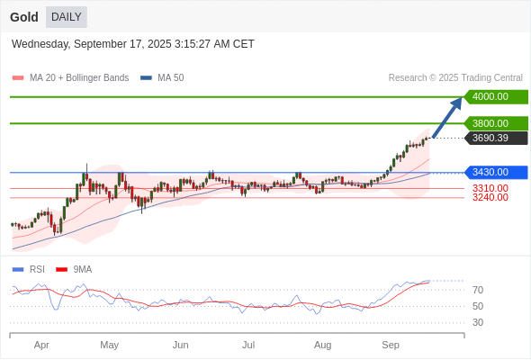 在 3430.00 之上,看涨,目标价位为 3800.00 ,然后为 4000.00 。