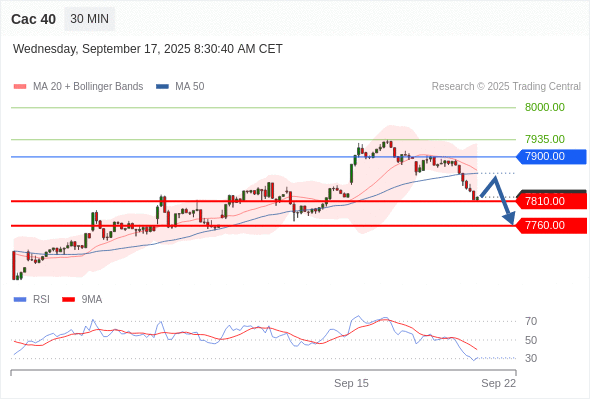 在 7900.00 之下,看跌,目标价位为 7810.00 ,然后为 7760.00 。