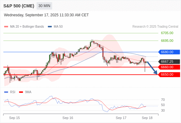 交易策略: 在 6680.00 之下,看跌,目标价位为 6660.00 ,然后为 6650.00 。