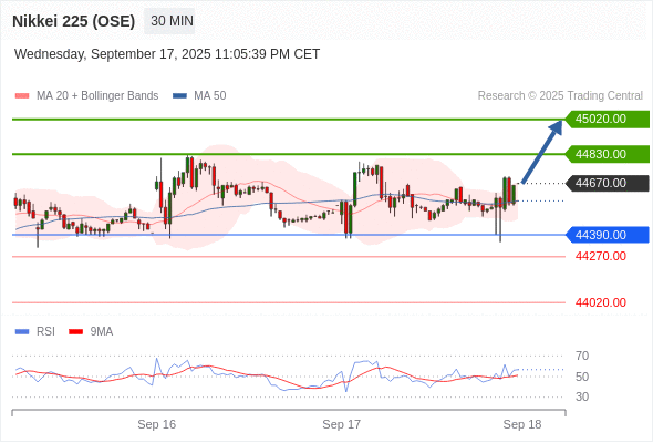 日经225股指期货 (OSE) 当日内: 超短线(当日内)支撑位在44390.00附近。
