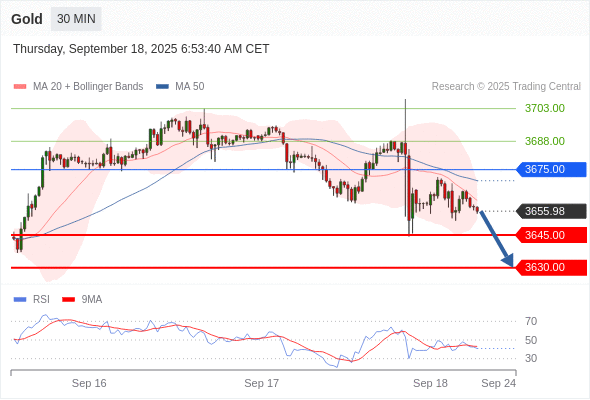 在 3675.00 之下,看跌,目标价位为 3645.00 ,然后为 3630.00 。