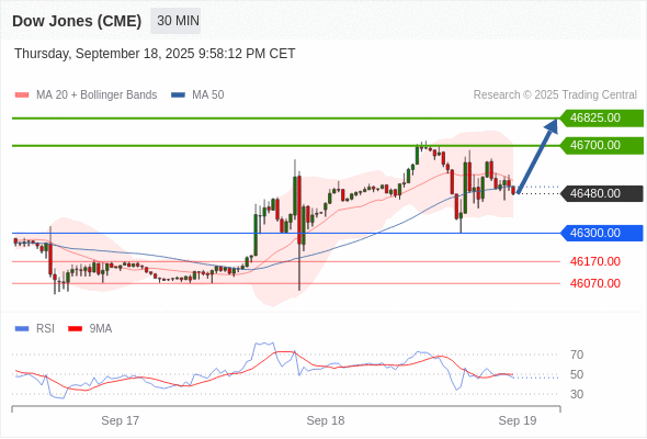 在 46300.00 之上,看涨,目标价位为 46700.00 ,然后为 46825.00 。
