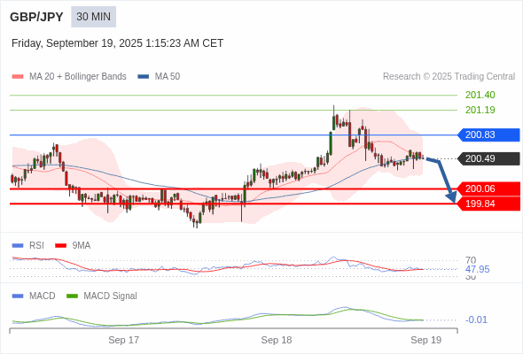 英镑/日元 当日内 : 看跌,在 200.83 之下。