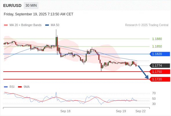 交易策略: 在 1.1820 之下,看跌,目标价位为 1.1750 ,然后为 1.1720 。
