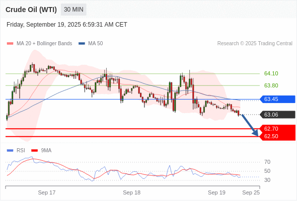 在 63.45 之下,看跌,目标价位为 62.70 ,然后为 62.50 。