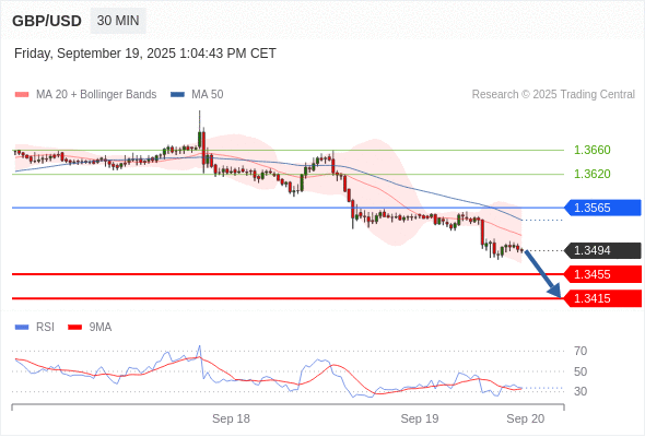 在 1.3565 之下,看跌,目标价位为 1.3455 ,然后为 1.3415 。