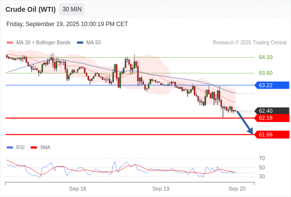 在 63.22 之下,看跌,目标价位为 62.18 ,然后为 61.66 。