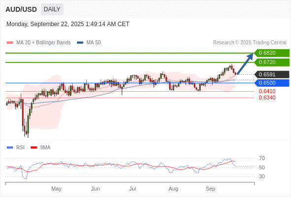 在 0.6500 之上,看涨,目标价位为 0.6720 ,然后为 0.6820 。