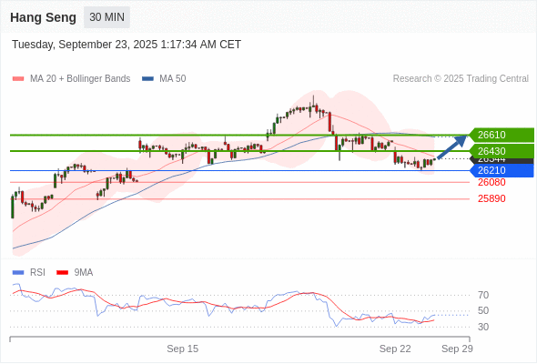 在 26210 之上,看涨,目标价位为 26430 ,然后为 26610 。