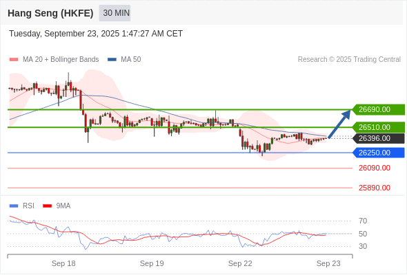 交易策略: 在 26250.00 之上,看涨,目标价位为 26510.00 ,然后为 26690.00 。