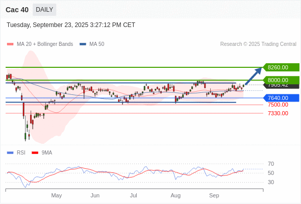 在 7640.00 之上,看涨,目标价位为 8000.00 ,然后为 8260.00 。