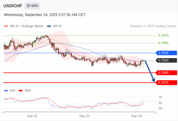 美元/瑞郎 当日内: 短期关键阻力位在0.7935。