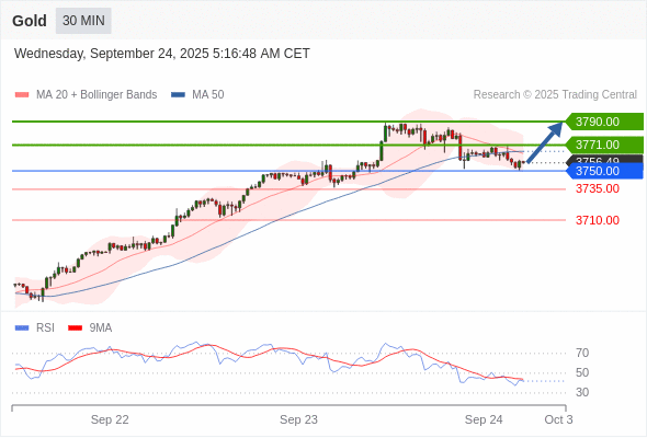 在 3750.00 之上,看涨,目标价位为 3771.00 ,然后为 3790.00 。
