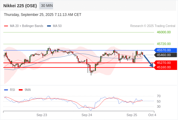 在 45570.00 之下,看跌,目标价位为 45270.00 ,然后为 45160.00 。