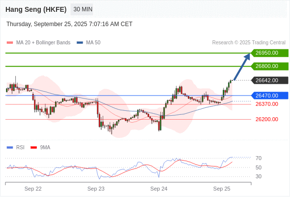 在 26470.00 之上,看涨,目标价位为 26800.00 ,然后为 26950.00 。