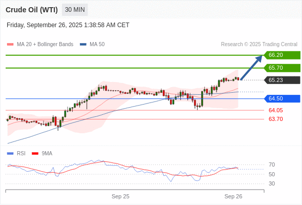 在 64.50 之上,看涨,目标价位为 65.70 ,然后为 66.20 。