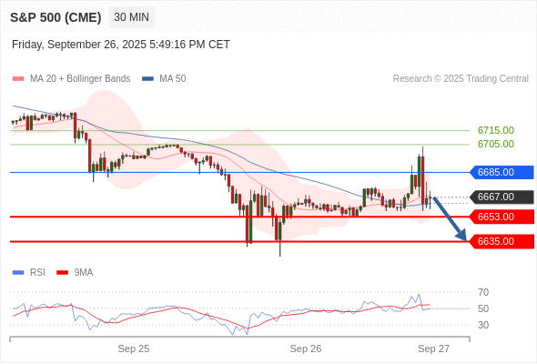 在 6685.00 之下,看跌,目标价位为 6653.00 ,然后为 6635.00 。