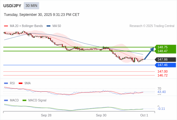 首页 > > 美元/日元 当日内 : 有上涨的可能,目标价位定在 148.75 。