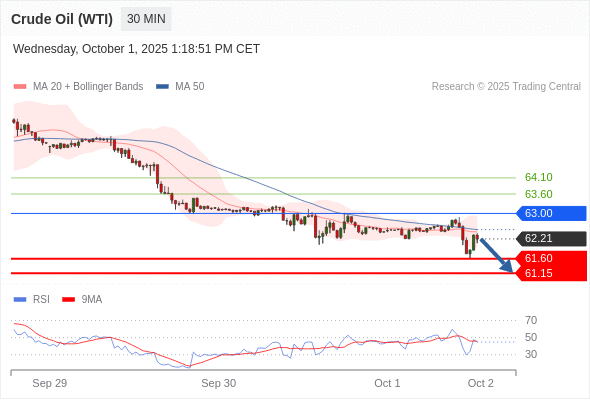 在 63.00 之下,看跌,目标价位为 61.60 ,然后为 61.15 。