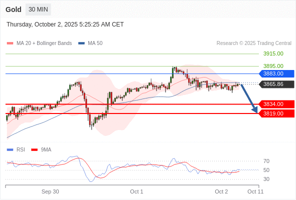 在 3883.00 之下,看跌,目标价位为 3834.00 ,然后为 3819.00 。