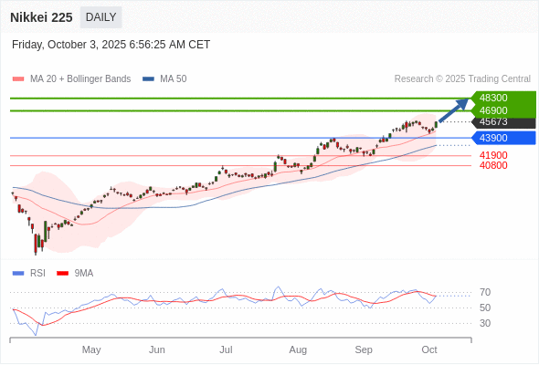 在 43900 之上,看涨,目标价位为 46900 ,然后为 48300 。