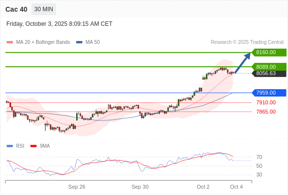 在 7959.00 之上,看涨,目标价位为 8089.00 ,然后为 8160.00 。