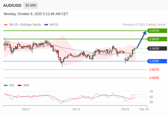 在 0.6585 之上,看涨,目标价位为 0.6625 ,然后为 0.6640 。