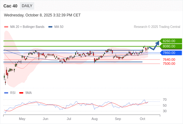 在 7860.00 之上,看涨,目标价位为 8080.00 ,然后为 8260.00 。