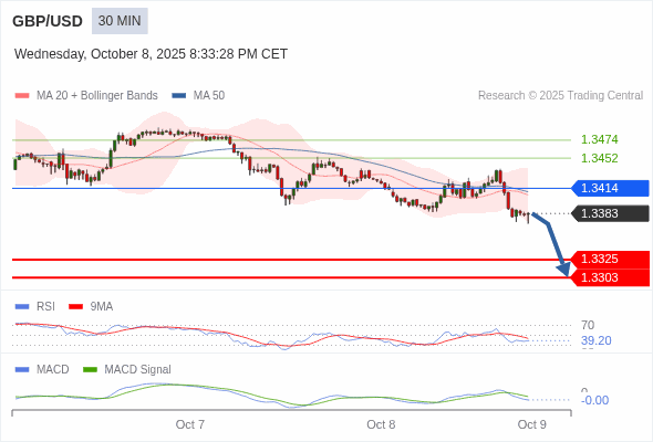 英镑/美元 当日内 : 看跌,在 1.3414 之下。