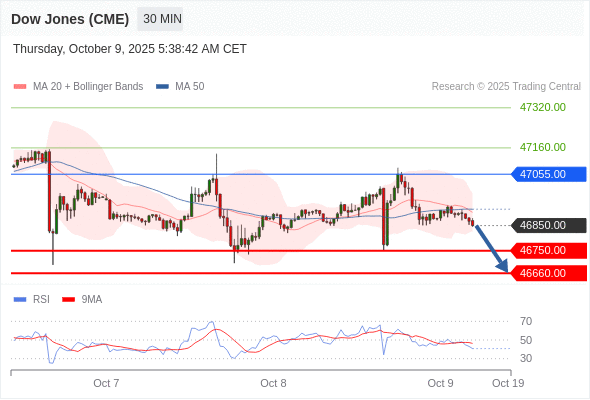在 47055.00 之下,看跌,目标价位为 46750.00 ,然后为 46660.00 。