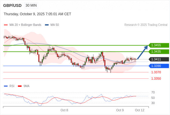 在 1.3390 之上,看涨,目标价位为 1.3435 ,然后为 1.3455 。