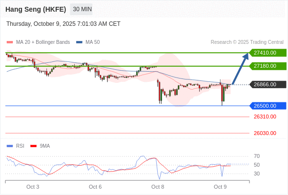 香港恒生指数期货 当日内: 目标位为27410.00。