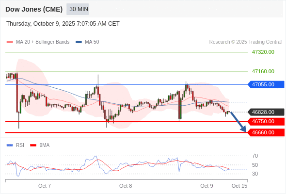 在 47055.00 之下,看跌,目标价位为 46750.00 ,然后为 46660.00 。
