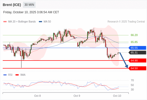 在 65.55 之下,看跌,目标价位为 64.90 ,然后为 64.50 。