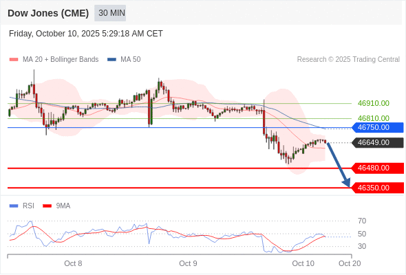 在 46750.00 之下,看跌,目标价位为 46480.00 ,然后为 46350.00 。