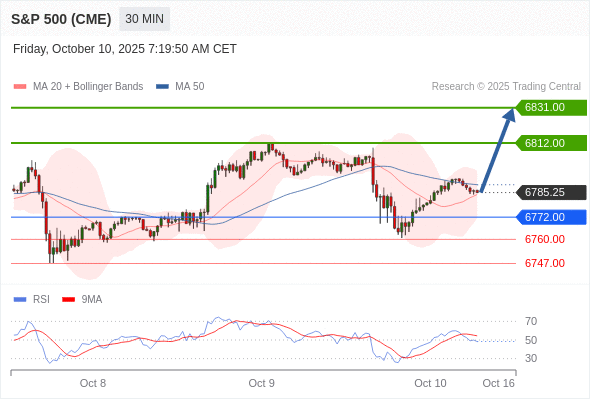 在 6772.00 之上,看涨,目标价位为 6812.00 ,然后为 6831.00 。