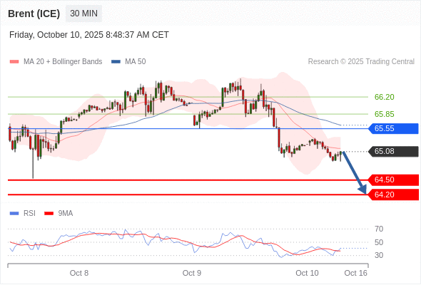 在 65.55 之下,看跌,目标价位为 64.50 ,然后为 64.20 。
