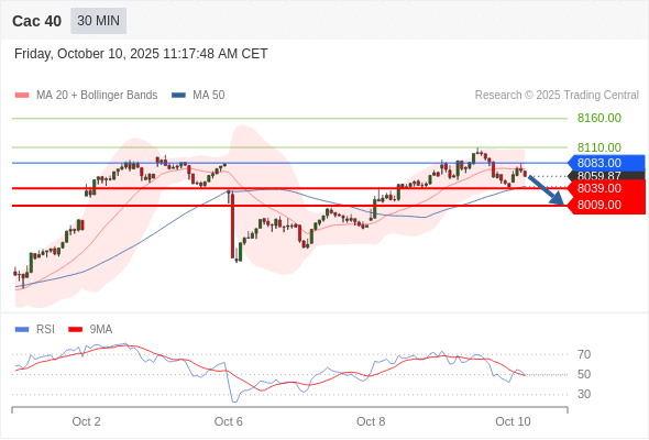 在 8083.00 之下,看跌,目标价位为 8039.00 ,然后为 8009.00 。