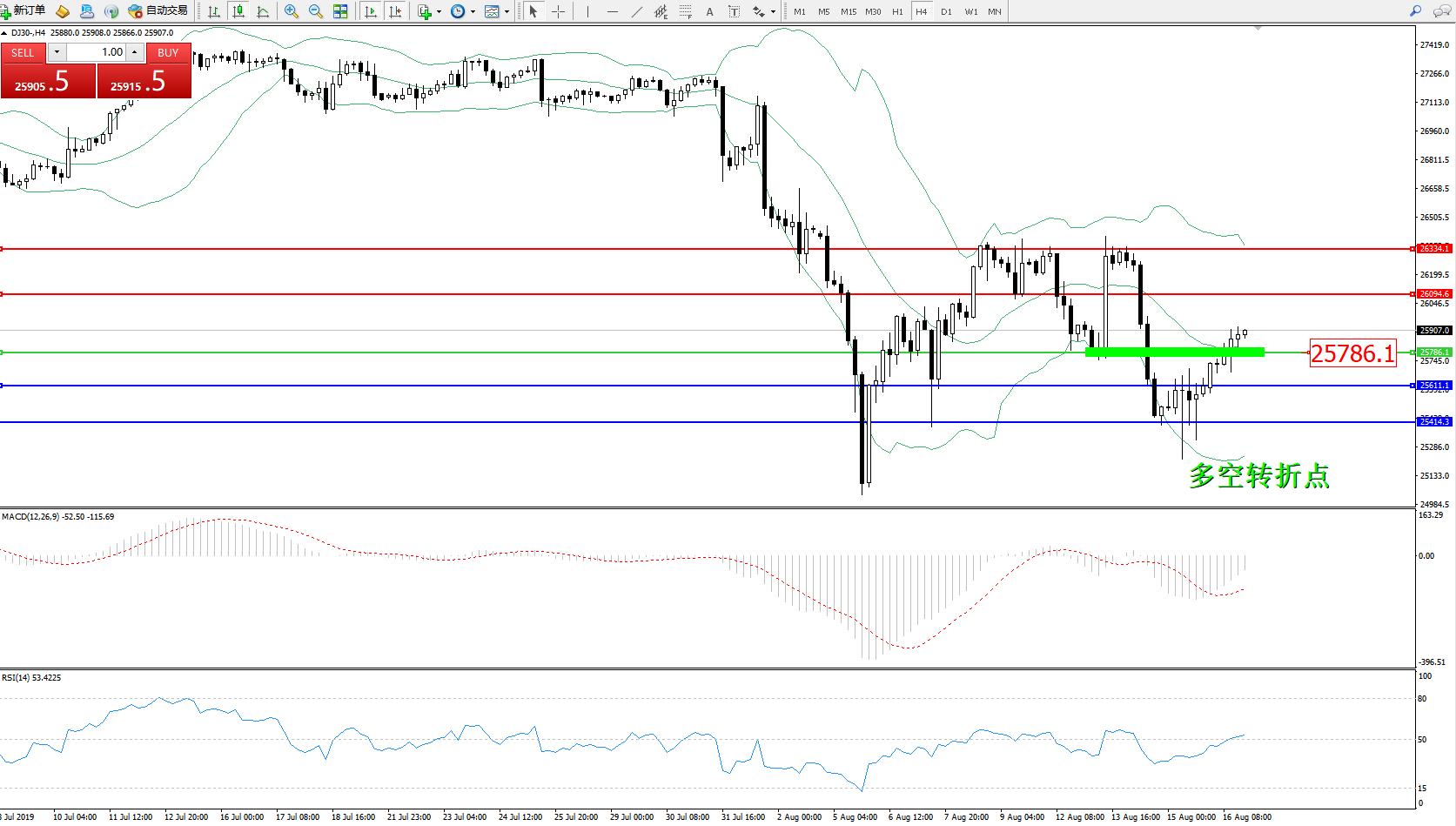 道琼斯指数8月16日(周五)收盘上涨306.60点,涨幅1.20%,报25886.01点。美国股市周五连续第二天上涨,主要股指结束了动荡的一周。投资者继续关注财报、贸易关系的进展与经济增长放缓风险等因素。没有新的激化贸易局势的言论让投资者情绪有所纾缓,另外投资者还猜测,如果欧洲的经济增长继续下滑,该地区的官员将会加大政策刺激。美国国债走低,收益率从多年低点回升。市场开启风险偏好模式;,投资者注意力转向下周在杰克逊霍尔举行的全球央行行长会议。随着围绕贸易问题的忧虑情绪缓和,投资者重返股市。