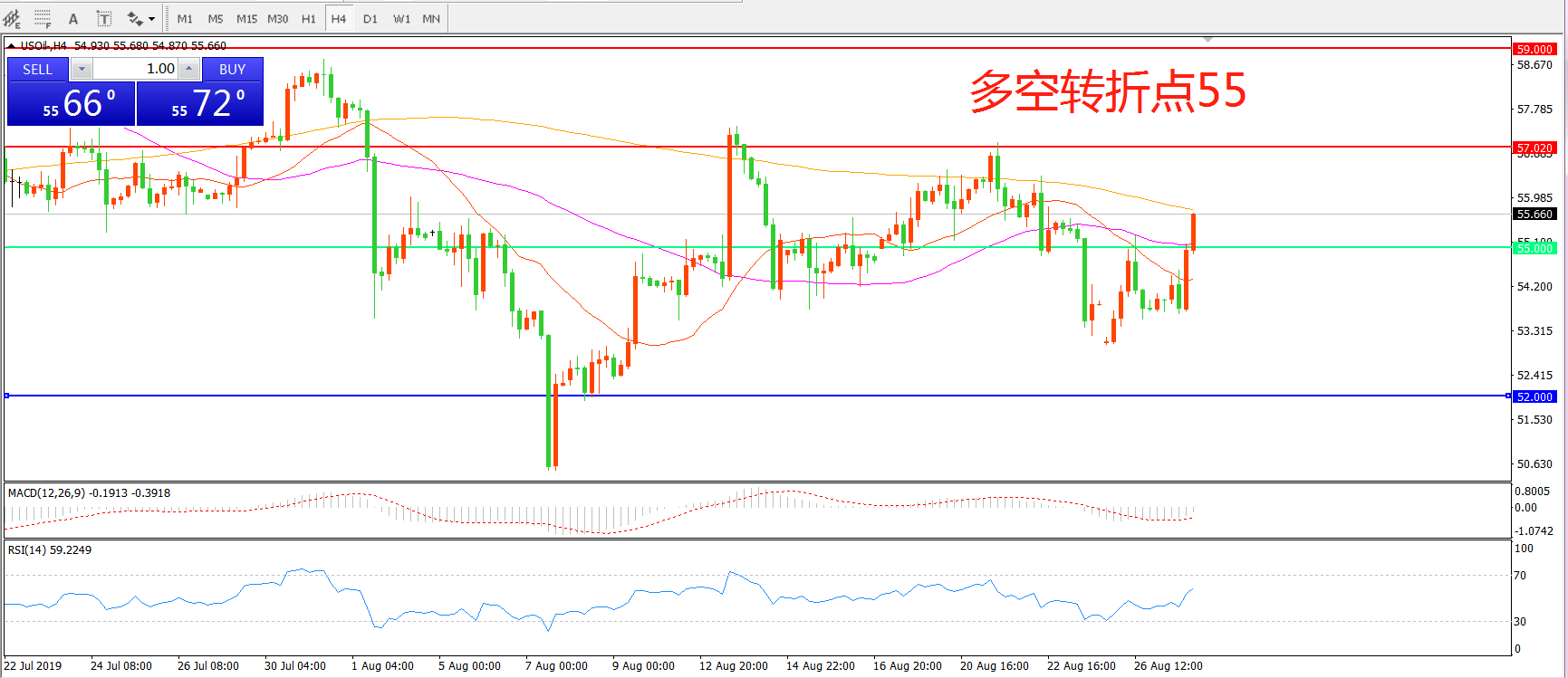 交易策略:在55.00之上看涨,目标57.00 59.00