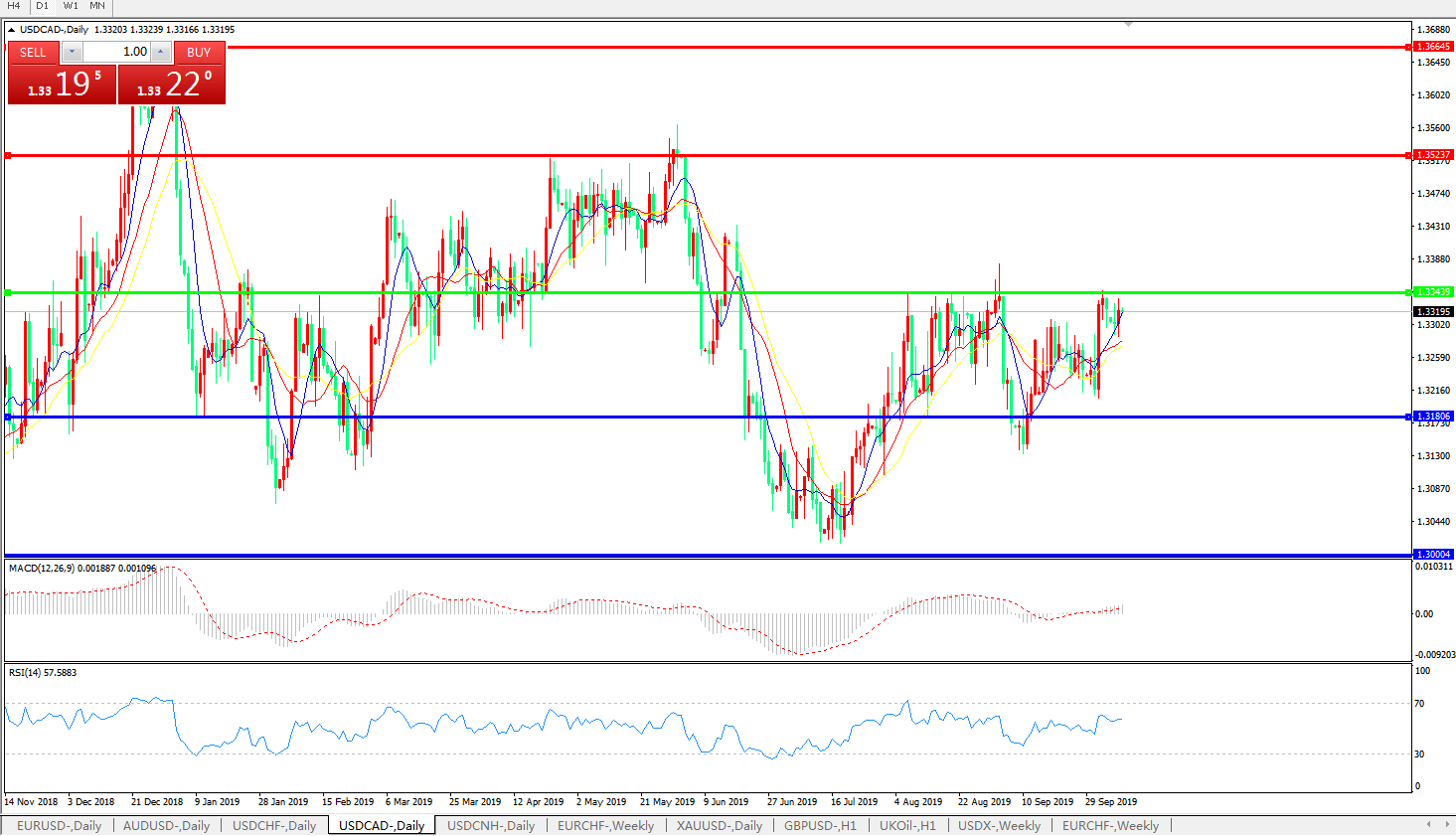 美元兑加元USDCAD    日线